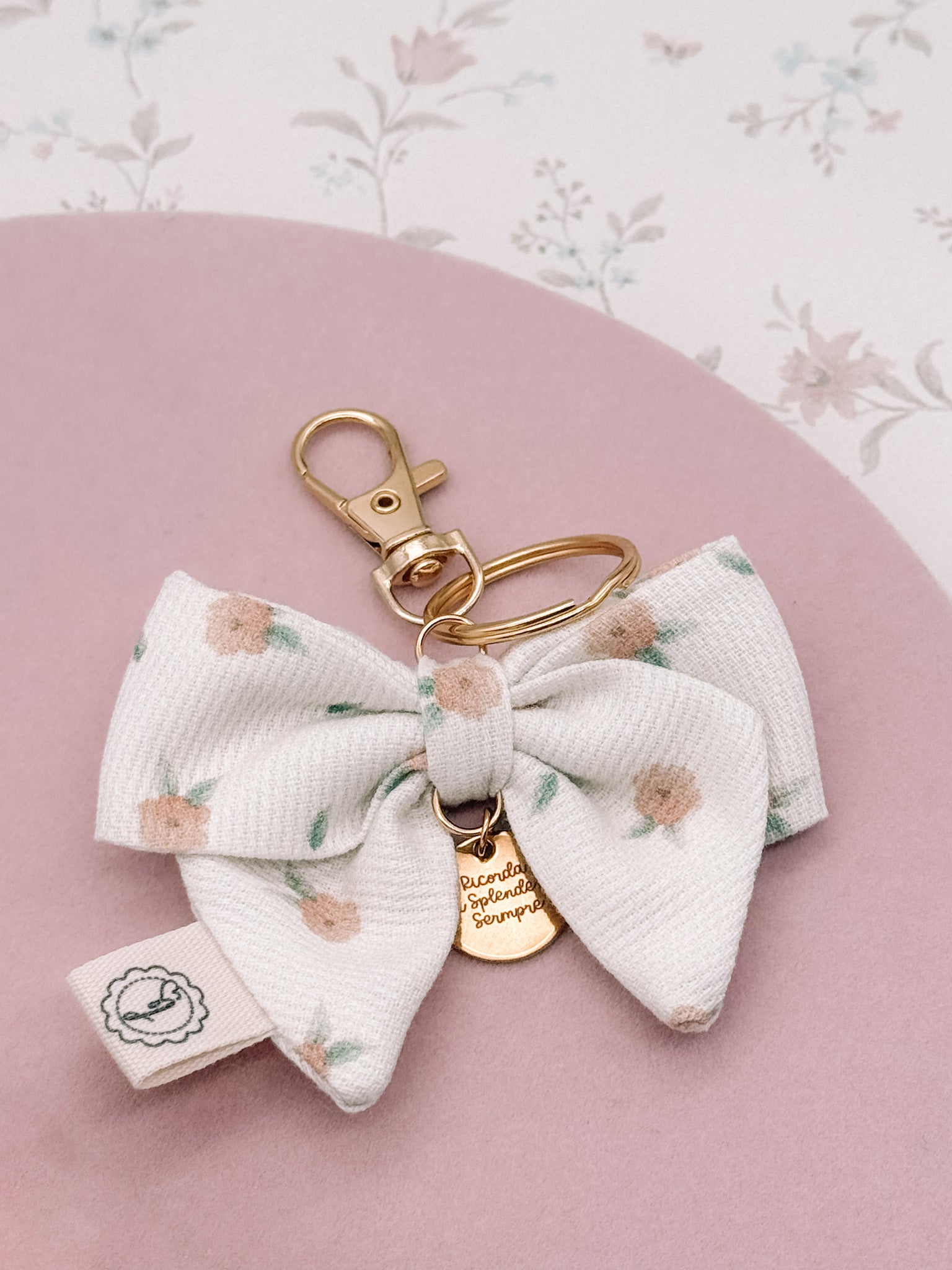 Un portachiavi a forma di fiocco, elegante e delicato, con una targhetta in acciaio inossidabile personalizzabile. Puoi aggiungere un nome, le iniziali, un piccolo simbolo, una data speciale o una breve frase per rendere questo accessorio unico e personale. Può essere appeso alle chiavi, a una borsa o a uno zaino, per dare un tocco di stile e dolcezza a qualsiasi cosa porti con te. Perfetto da regalare a una persona speciale o da coccolarsi come piccolo dettaglio personale.