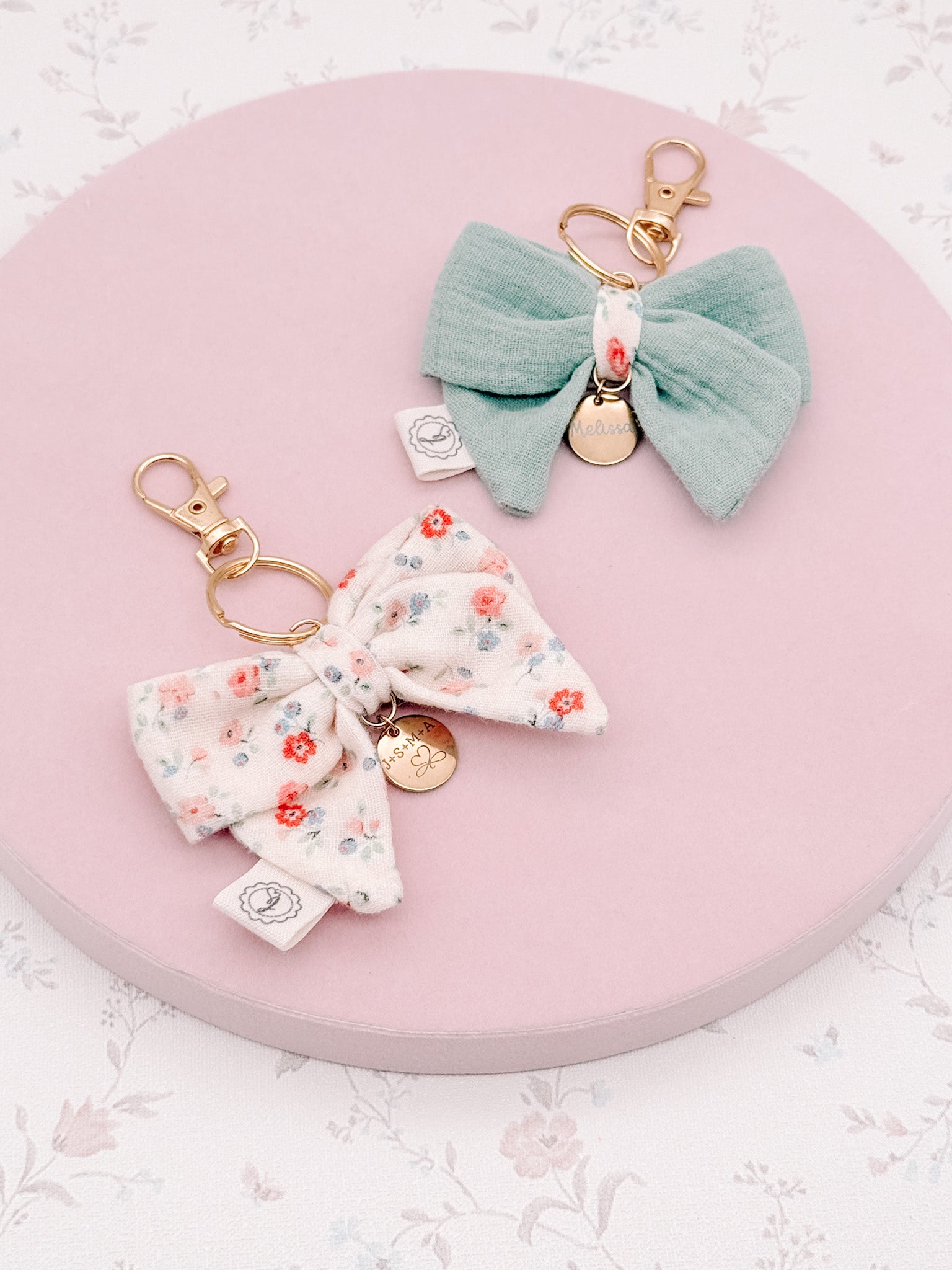Un portachiavi a forma di fiocco, elegante e delicato, con una targhetta in acciaio inossidabile personalizzabile. Puoi aggiungere un nome, le iniziali, un piccolo simbolo, una data speciale o una breve frase per rendere questo accessorio unico e personale. Può essere appeso alle chiavi, a una borsa o a uno zaino, per dare un tocco di stile e dolcezza a qualsiasi cosa porti con te. Perfetto da regalare a una persona speciale o da coccolarsi come piccolo dettaglio personale.